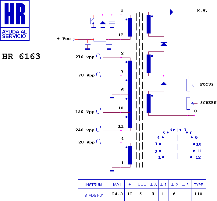 Line Output Transformer / Flyback: HR6163 (HR 6163) - 632043000 SELECO