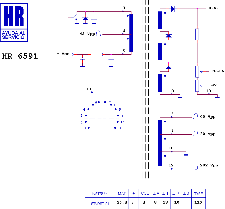 Line Output Transformer / Flyback: HR6591 (HR 6591) - 11821157 / 700402127/CF9633 CROWN CTV724 CLATRONIC / 6983 WHITE...