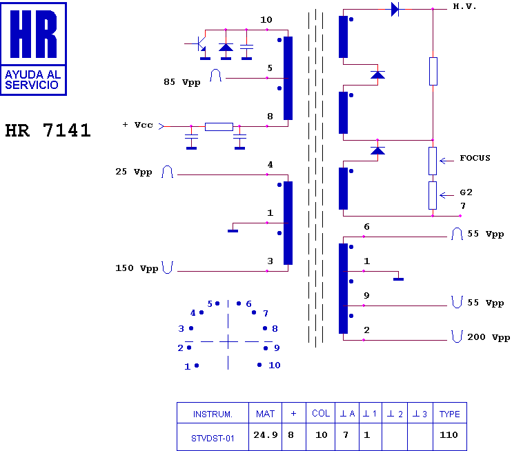 Line Output Transformer / Flyback: HR7141 (HR 7141) - LINE OUTPUT TRANSFORMER (LOPT)/ FLYBACK ULTRAVOX/ELDOR